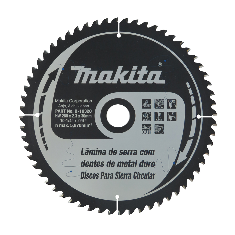 Disco de Serra Circular Makita 260mm x 30mm 60 Dentes Madeira B-19320