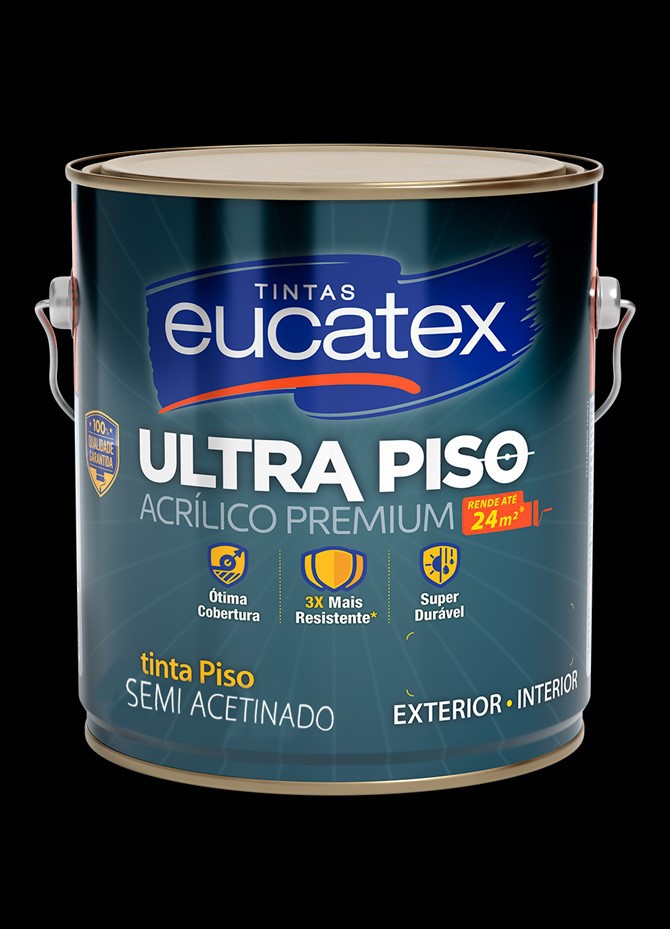 Ultra Piso Acrílico Premium é uma tinta acrílica especialmente formulada para pintura de pisos cimentícios, quadras, calçadas e estacionamentos. Sua nova fórmula atribui ao produto alta resistência, cobertura, aderência e durabilidade. Uso externo e interno.