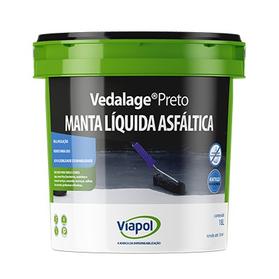 Vedalage® Preto é uma manta líquida pronta para uso à base de asfalto modificado com polímeros, prontos para uso. É um impermeabilizante que apresenta excelentes características de elasticidade, flexibilidade e aderência.